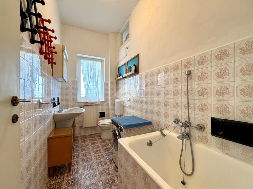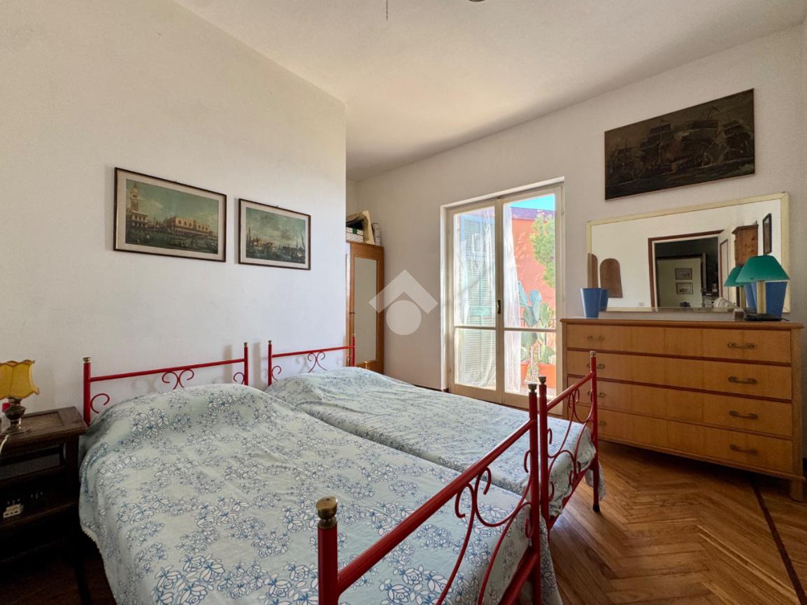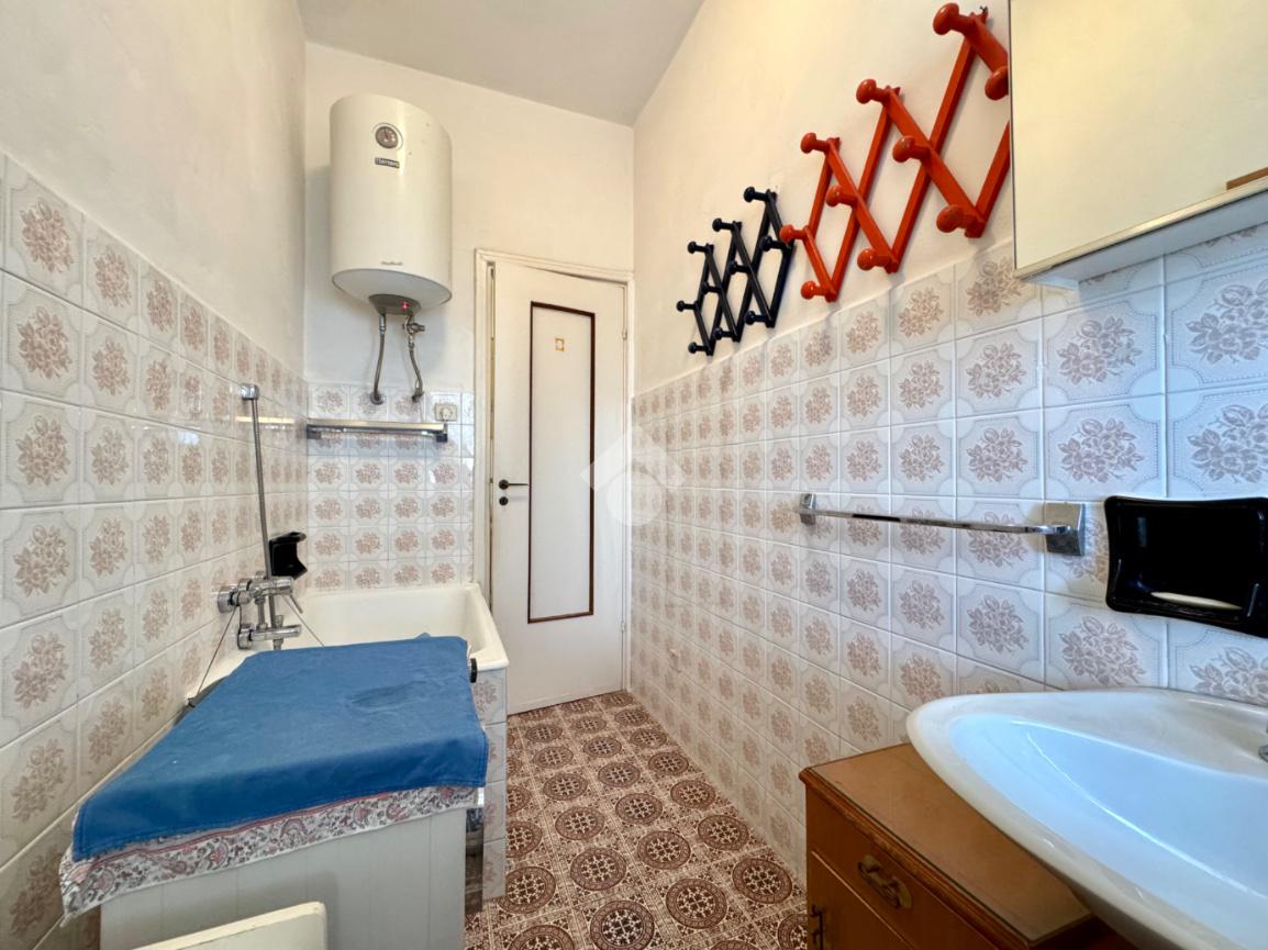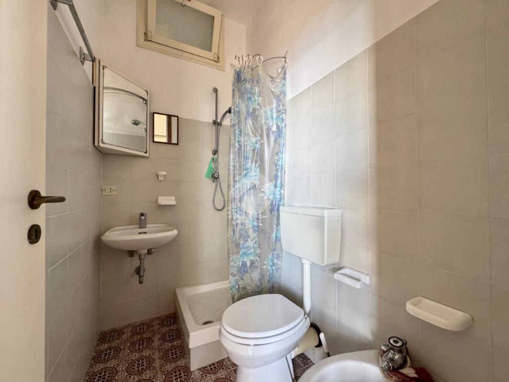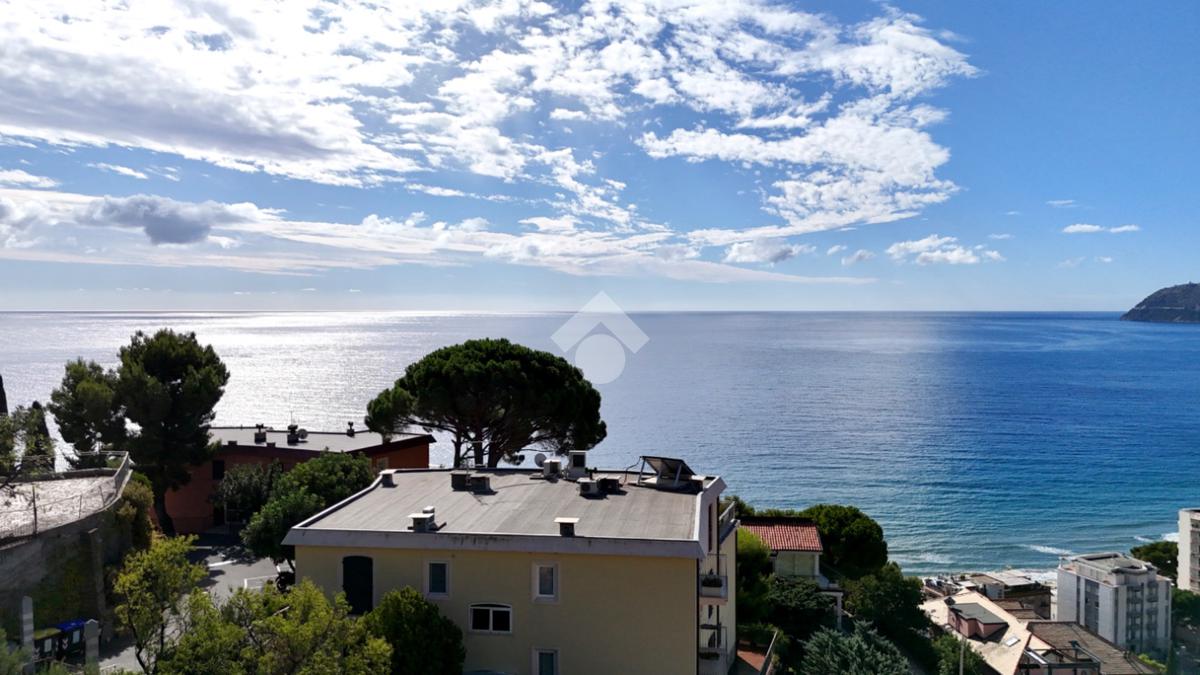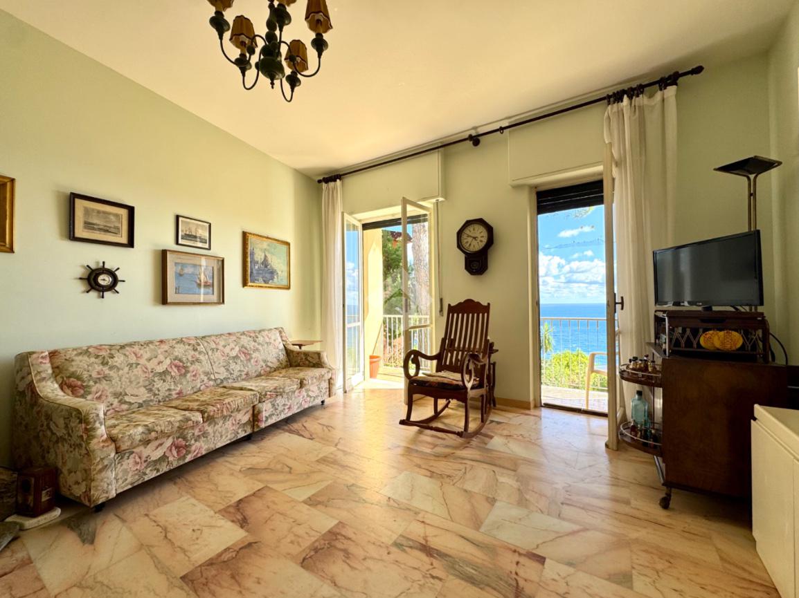 L’ingresso si apre su un ampio disimpegno che distribuisce in maniera funzionale gli ambienti interni. La zona giorno è composta da un salone luminoso con affaccio diretto sul mare e accesso al primo balcone, ideale per momenti di relax all’aperto. A seguire troviamo il cucinotto finestrato e un primo bagno con vasca e finestra. La zona notte offre una camera da letto, oltre a una camera matrimoniale con bagno privato e ulteriore accesso al secondo balcone, anch’esso con splendida vista sul mare. A completare la proprietà posto auto davanti allo stabile.