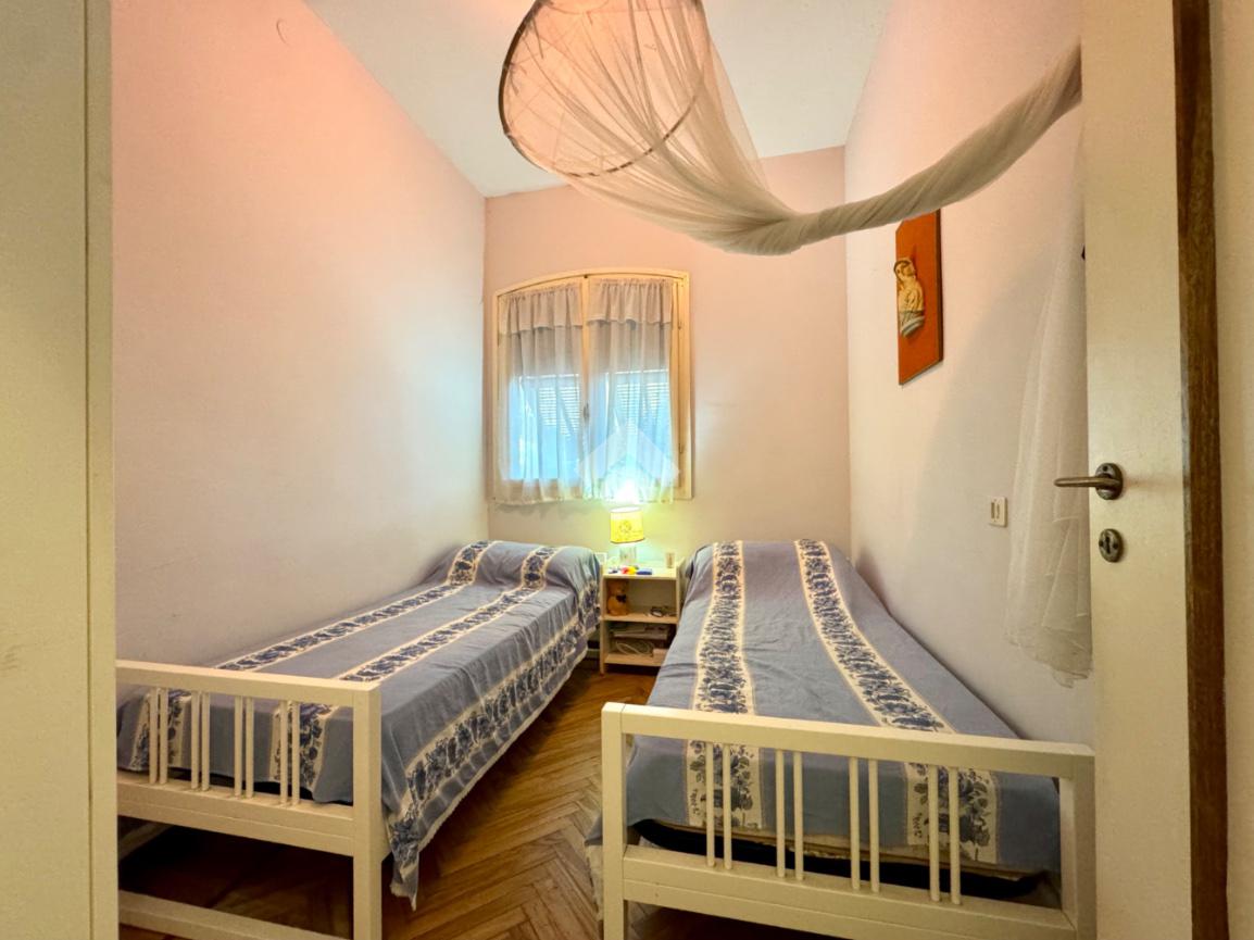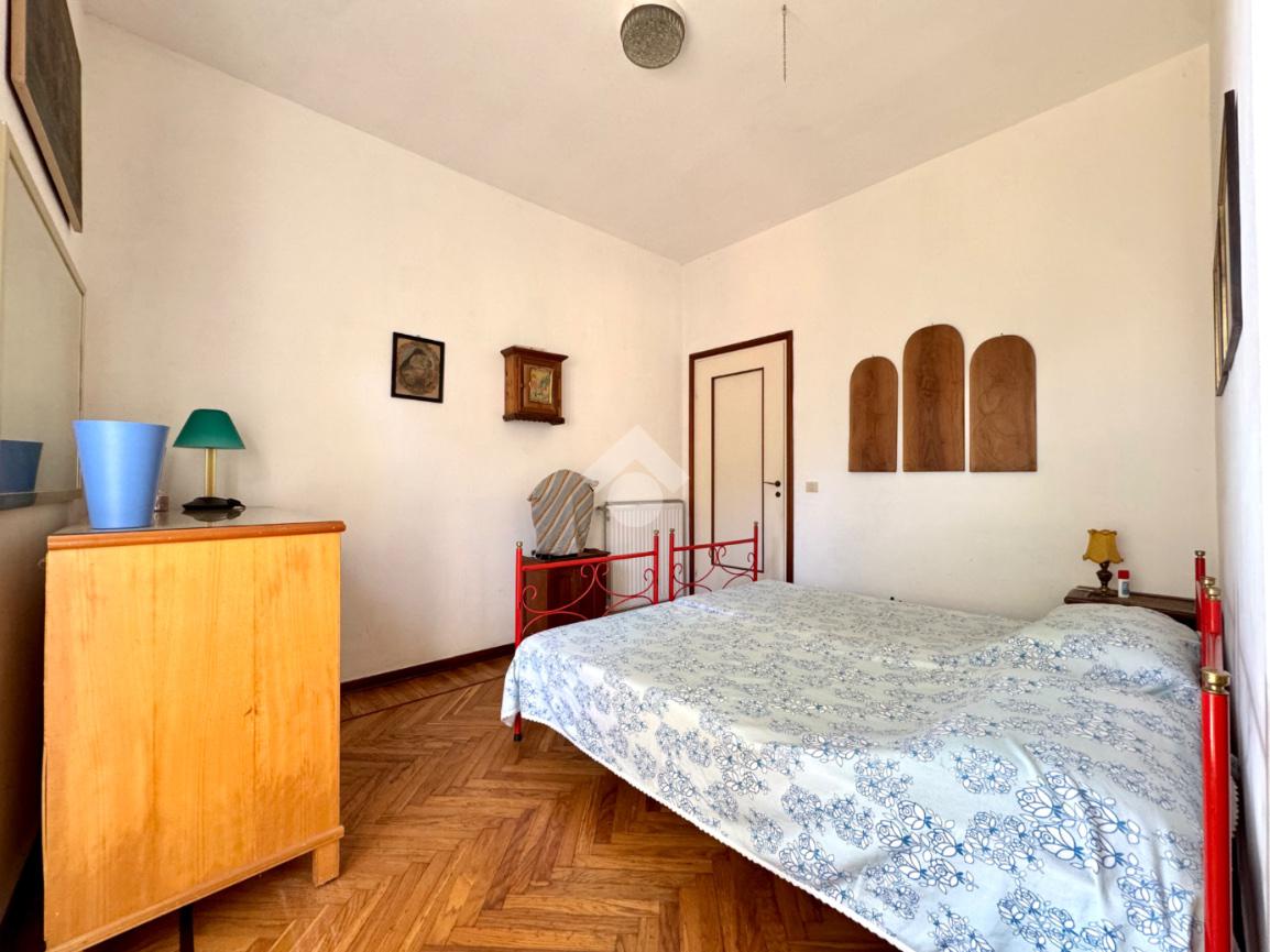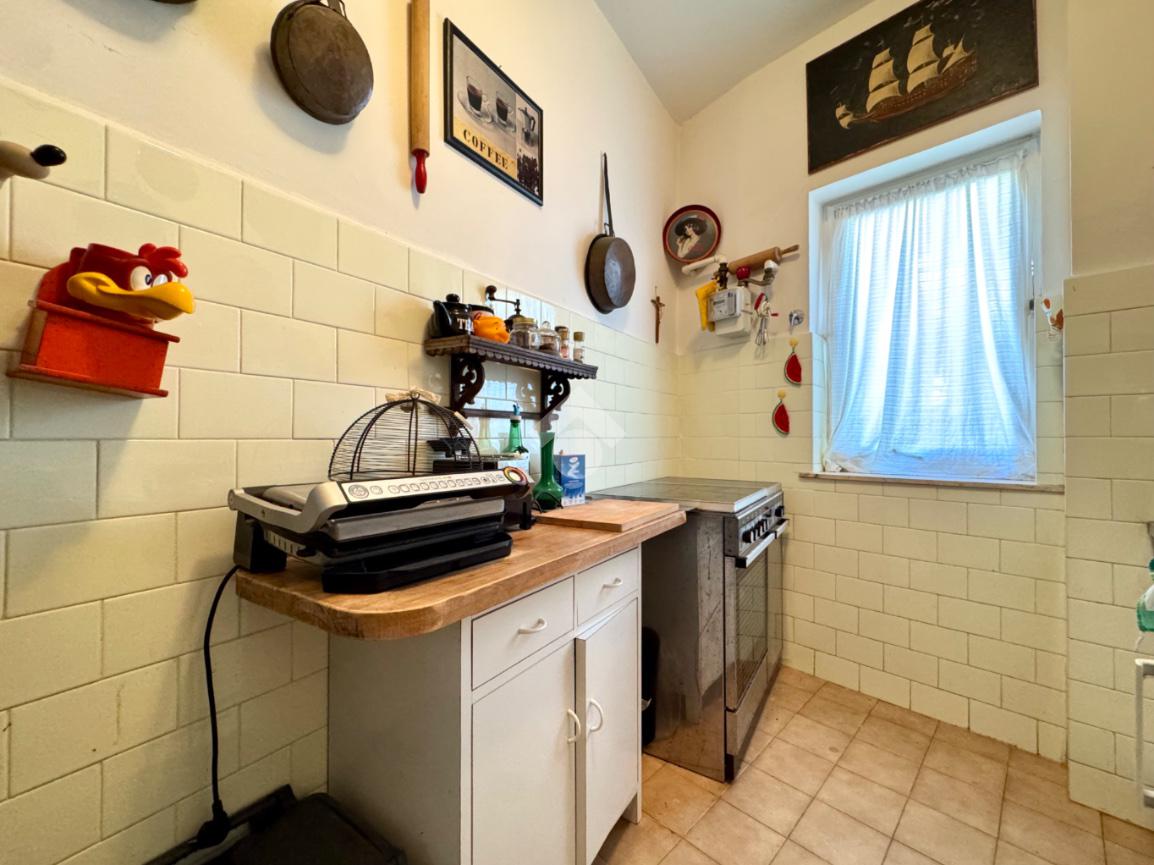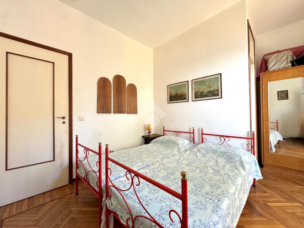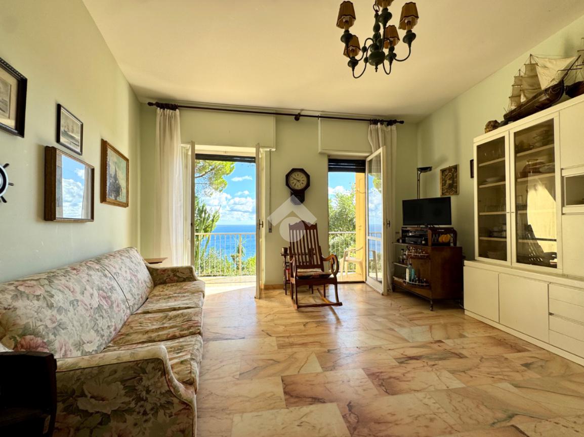 L’ingresso si apre su un ampio disimpegno che distribuisce in maniera funzionale gli ambienti interni. La zona giorno è composta da un salone luminoso con affaccio diretto sul mare e accesso al primo balcone, ideale per momenti di relax all’aperto. A seguire troviamo il cucinotto finestrato e un primo bagno con vasca e finestra. La zona notte offre una camera da letto, oltre a una camera matrimoniale con bagno privato e ulteriore accesso al secondo balcone, anch’esso con splendida vista sul mare. A completare la proprietà posto auto davanti allo stabile.