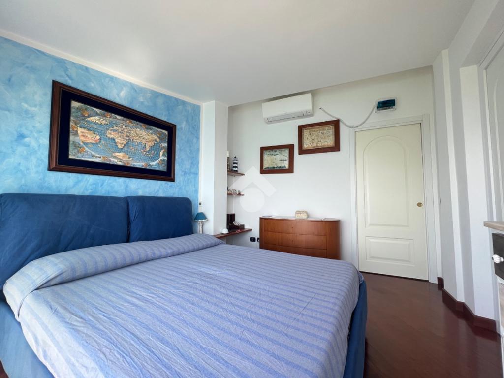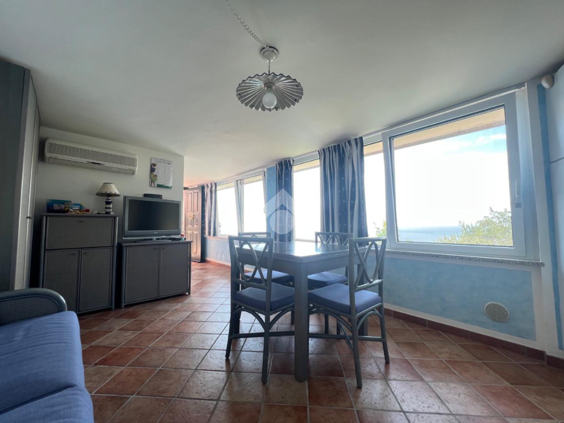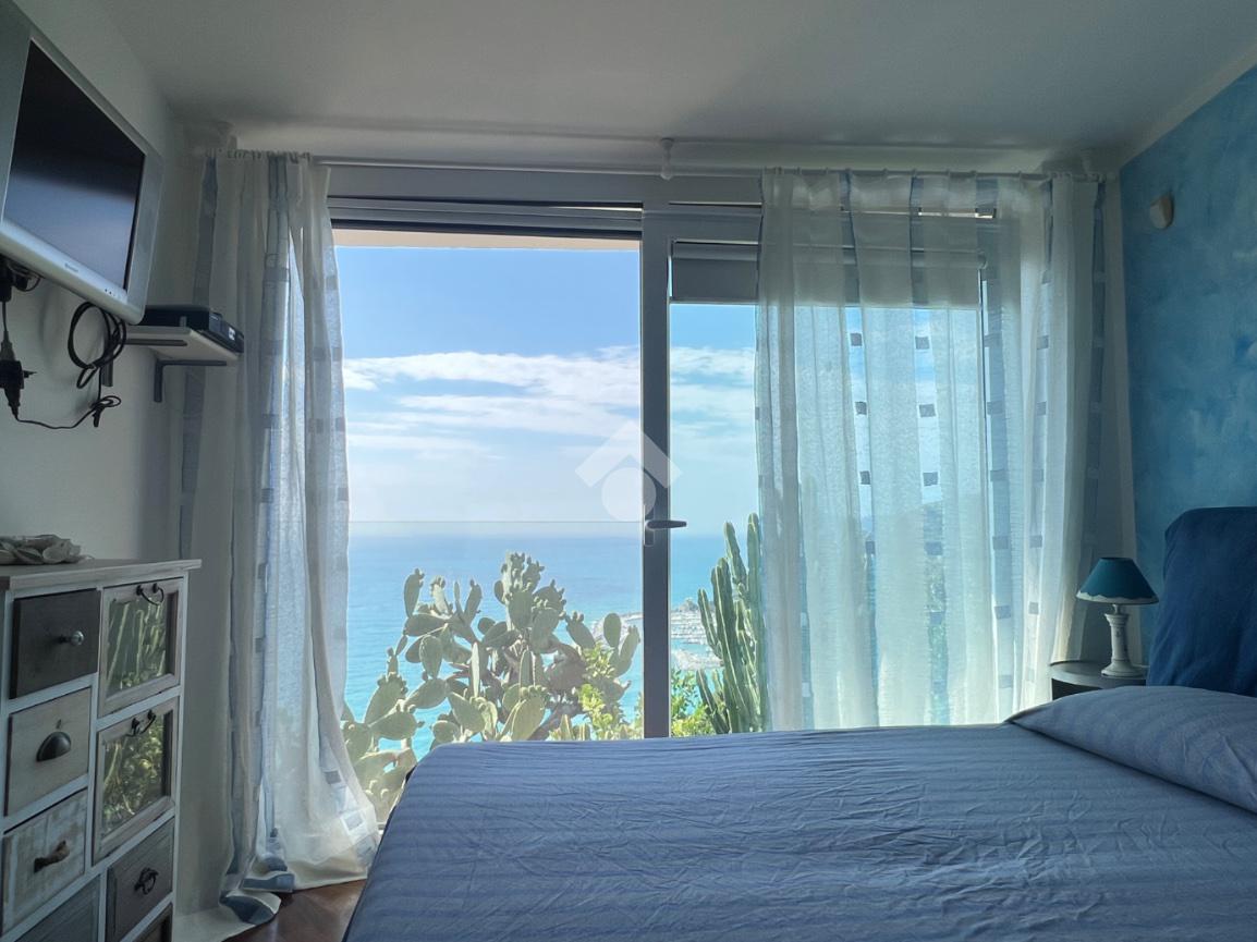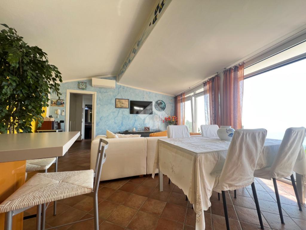 Al piano inferiore, attualmente separato ma con possibilità di collegamento interno, si trova un ampio bilocale, anch’esso con vista mare, oltre a ulteriore spazio esterno, perfetto come zona ospiti, dependance o soluzione da mettere a reddito.