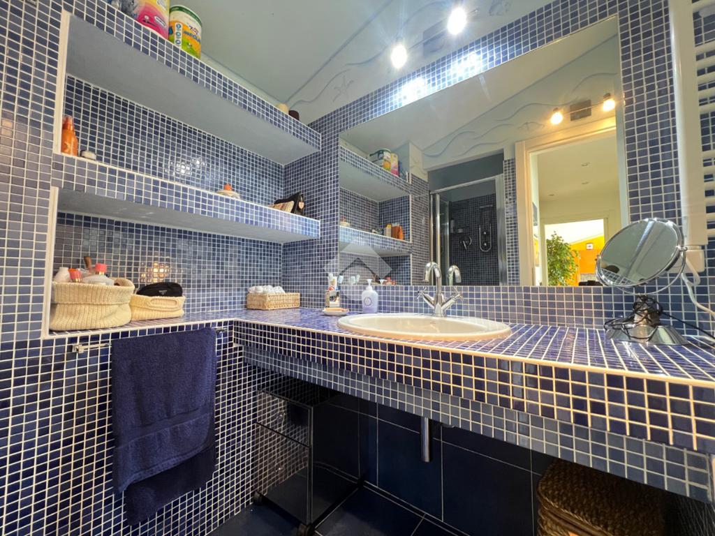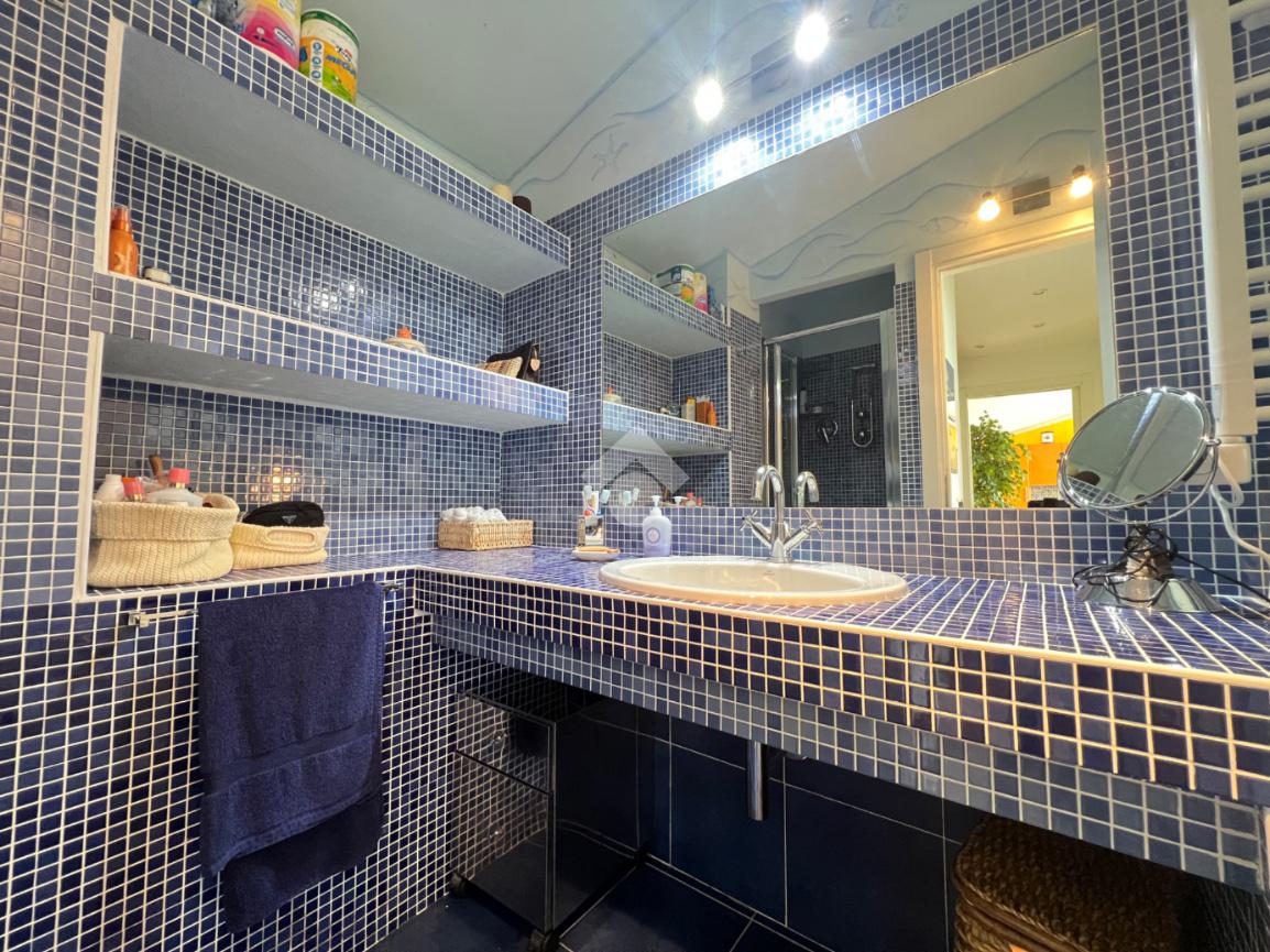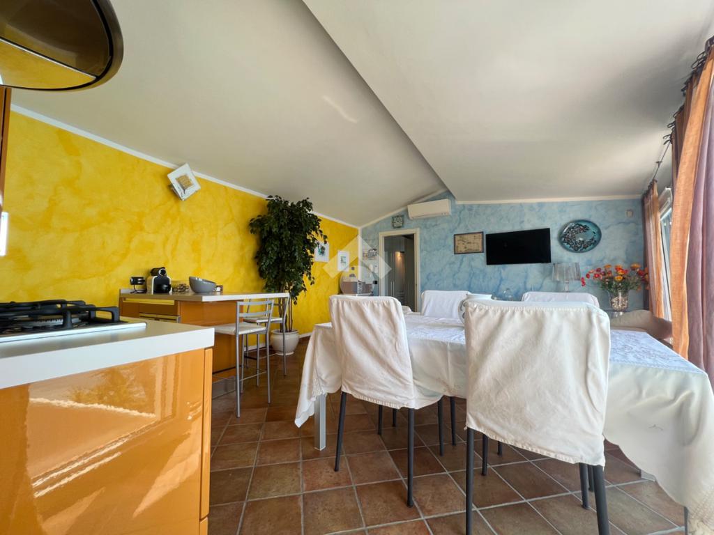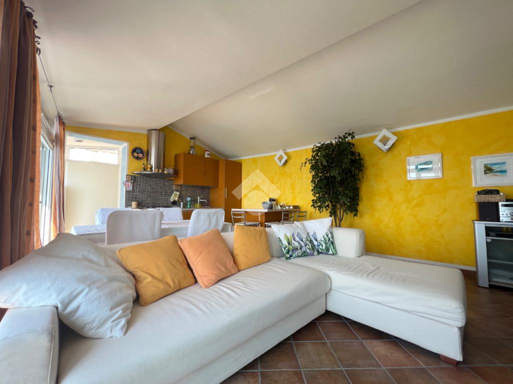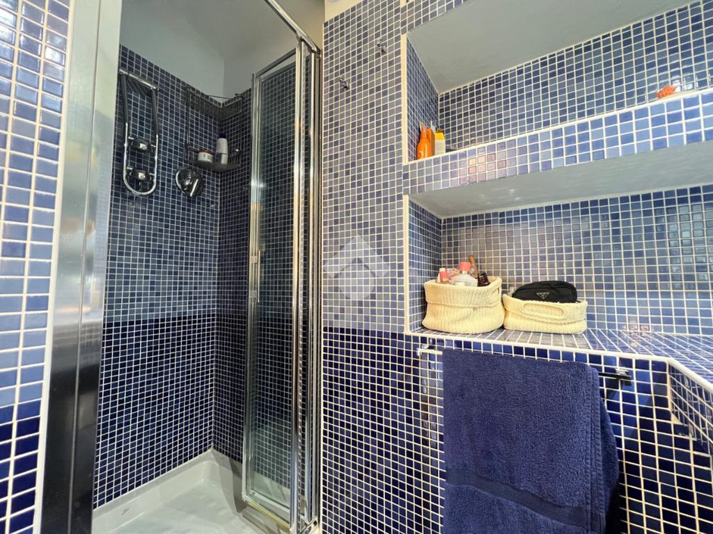Al piano inferiore, attualmente separato ma con possibilità di collegamento interno, si trova un ampio bilocale, anch’esso con vista mare, oltre a ulteriore spazio esterno, perfetto come zona ospiti, dependance o soluzione da mettere a reddito.
