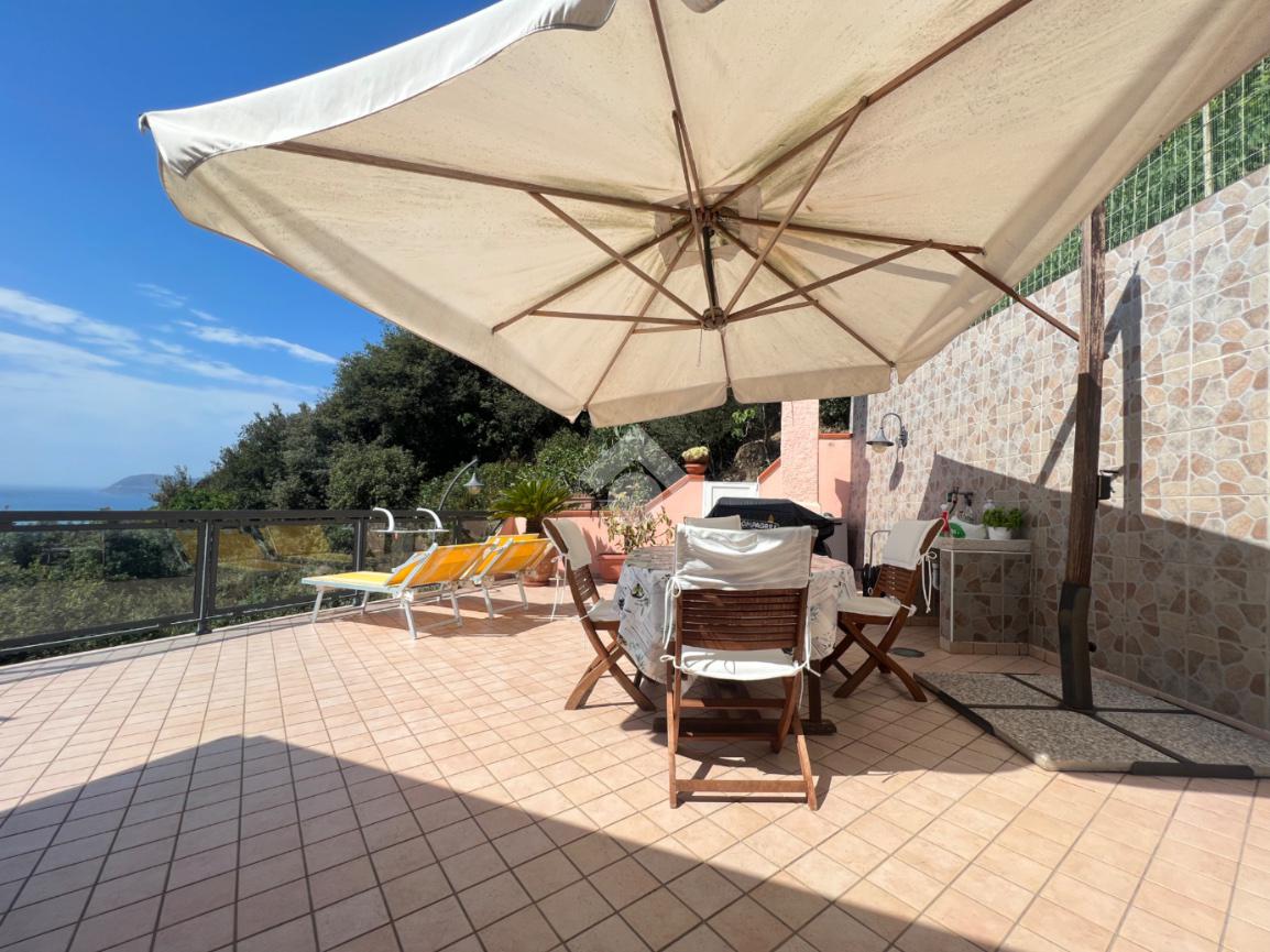 Al piano superiore troviamo un magnifico terrazzo di circa 40 mq, ideale per momenti di relax e convivialità, dal quale si gode di una vista mare mozzafiato.